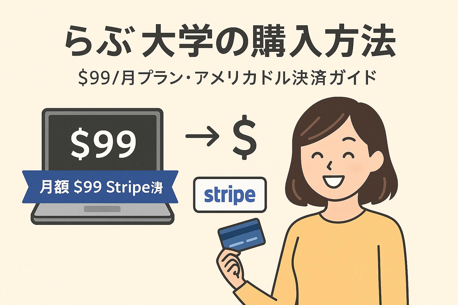 「らぶ大学」のメンバーシップは、日本円ではなく アメリカドル(USD) での決済となります。